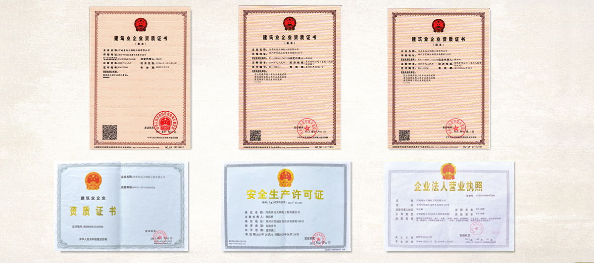 公司擁有“鋼結(jié)構(gòu)制造壹級(jí)”和“鋼結(jié)構(gòu)工程專(zhuān)業(yè)承包壹級(jí)”專(zhuān)業(yè)資質(zhì),獲得業(yè)內(nèi)認(rèn)可的各類(lèi)專(zhuān)利及榮譽(yù)資質(zhì)證書(shū);公司及產(chǎn)品已通過(guò)了ISO9001質(zhì)量管理體系認(rèn)證和省級(jí)檢測(cè)、鑒定,安全耐用。
